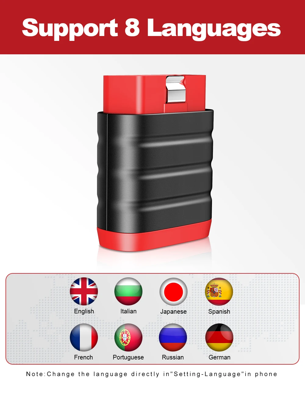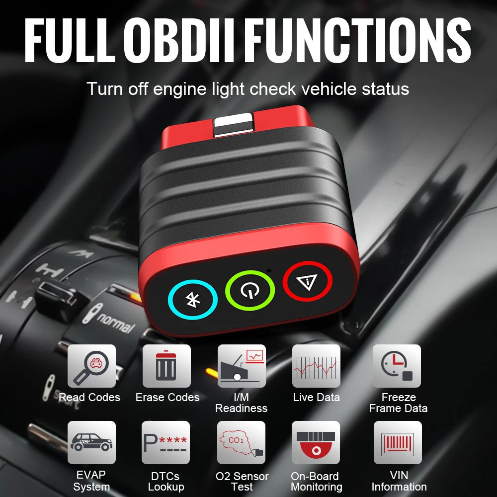 *-Read extensive current, pending and permanent codes in OBD system quickly *-Clear detected fault codes and turn off the Check Engine Light efficiently *-View graphical live data of vehicle's computer module(s) for easy analyses *-View the vehicle's operating parameters at the moment a DTC is detected *-Read I/M readiness status to have a vehicle inspected for state emissions compliance *-Perform O2 sensor test to check fuel efficiency and vehicle emissions *-Read the results of on-board diagnostic monitoring tests for specific components/systems *-Retrieve the vehicle information of VIN, CINs, and CVNs completely *-Perform the component Test by allowing initiating a leak test for the vehicle's EVAP system