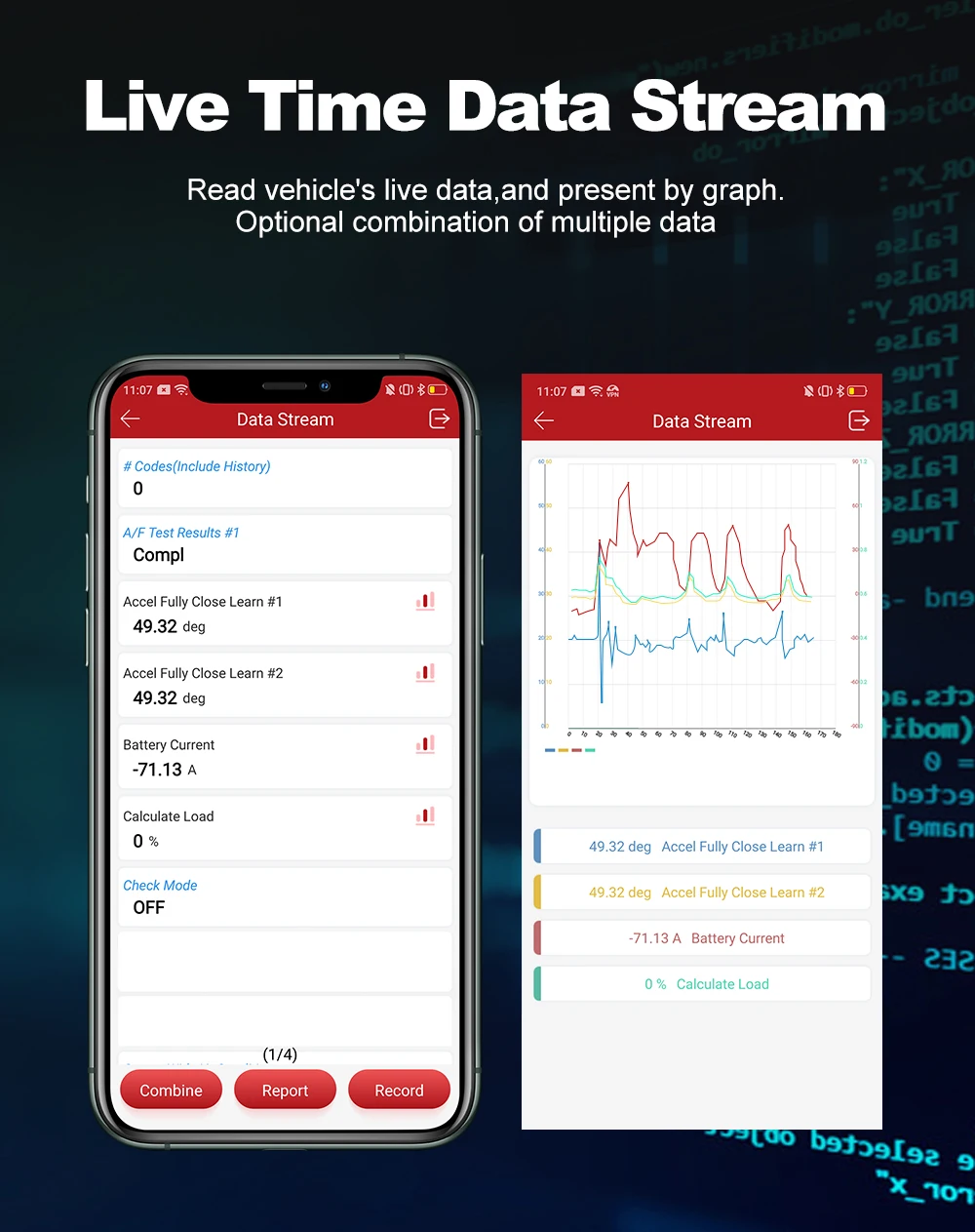 With superior all systems diagnoses, this multipurpose obd2 scanner can be used to read all available systems’ECU information to facilitate the vehicle diagnosis.The complete systems vary from different cars and they usually include engine, transmission, ABS, SRS, SAS, TPMS, EPB and chassis / body / electrical equipment system etc. * Examinate your car like a professional mechanical technician *Read DTCs from the vehicle’s all electronic control systems to locate problem areas, and offer solutions; *Erase the codes easily after DTCs retrieving and certain repairs have been carried out and turn off fault Indicator lamp; *Live data shows each sendor parameter item displayed in analog, text, waveform graph modes etc.; *The active test used to access vehicle-specific subsystem and component tests.