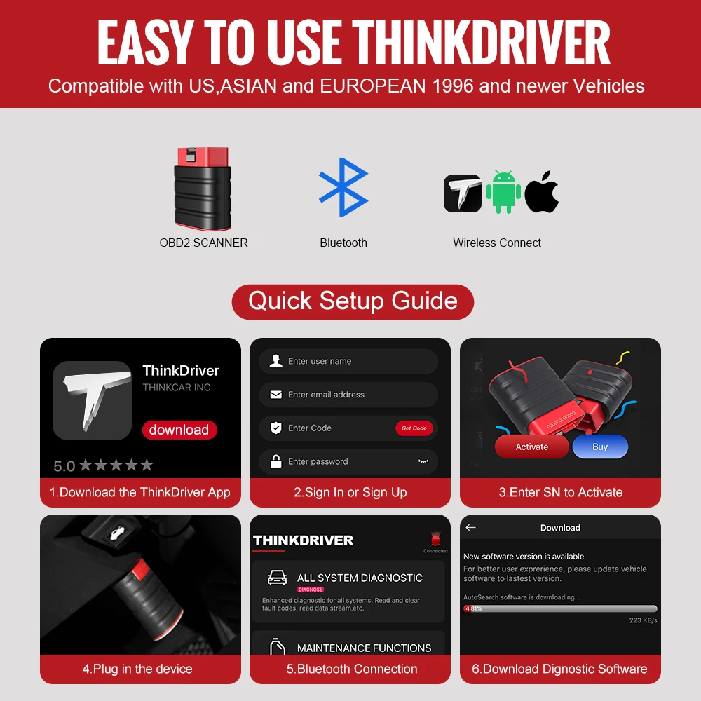 Software Version:Updated Thinkdriver Bluetooth OBD2 Car Scanner