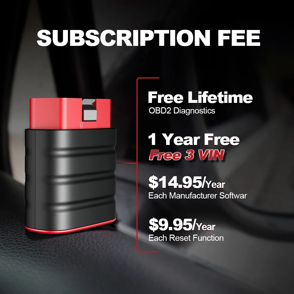 1.Car Model Software:If you have more model diagnostic needs,you can buy in our App,each model software priced at $14.95 per year.Full system diagnostics and special features are included in each model software. 2.Maintenance Software:Also you can choose to purchase maintenance software directly,it's also $9.95 per year,which can be used for maintenance of all different models,not limited to one car brand. Preferential Activity:Originally sent 1 VIN for free one year,now send 3 VIN for free one year.Don't miss the chance.