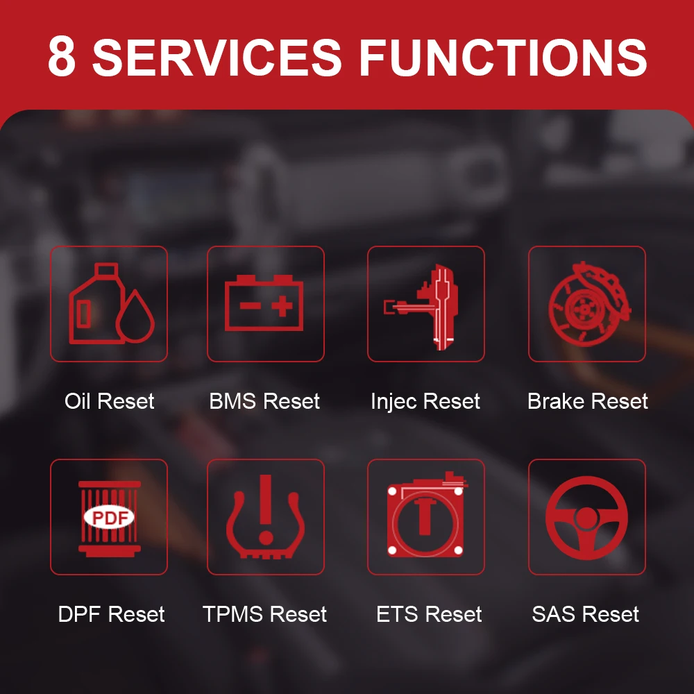 8 Services Functions:Oil/Brake/TPMS/SAS/ETS/Injector/BMS/DPF